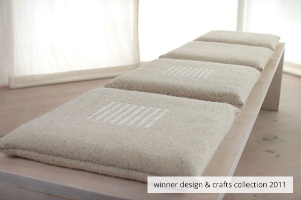 Aus Wolle-Ziegenhaar gearbeitet, sind die Sitzpolster schier unverwüstliche Stuhlauflagen in einem Standardmaß von 38 cm x 38 cm. Gestapelt werden sie zu einem mobilen Sitzplatz und Dank ihrer Durabilität und Wärmefähigkeit können sie einfach dahin gelegt werden, wo man „Platz nehmen“ möchte: auf ein Gartenmäuerchen, die Verandatreppe oder auf die tiefe Fensterbank.